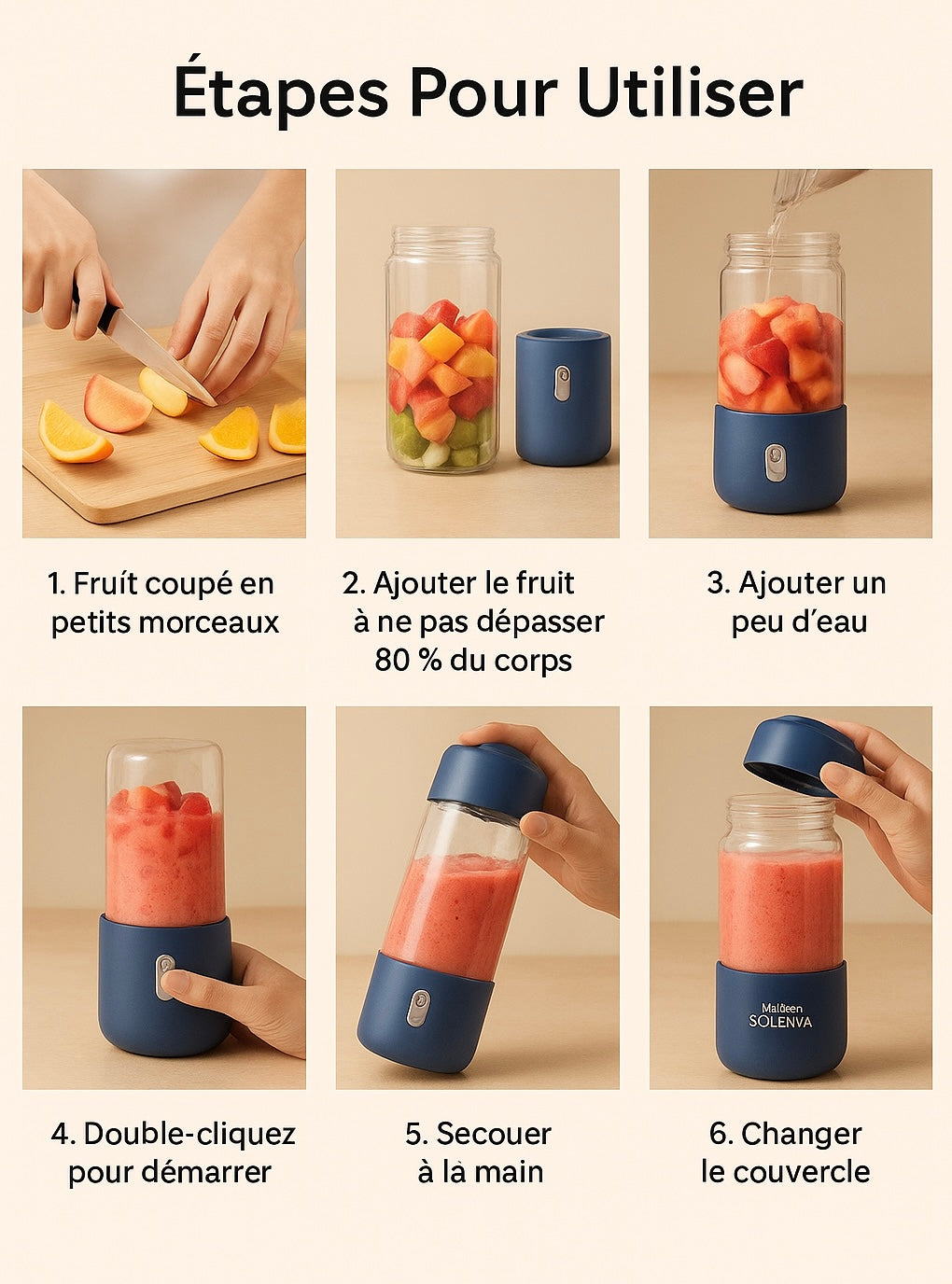 Le mixeur est parfait pour les fruits frais, légumes tendres, lait, yaourt, jus et glaçons concassés. Il n'est pas recommandé pour les aliments trop durs (comme les noix entières ou les gros glaçons)