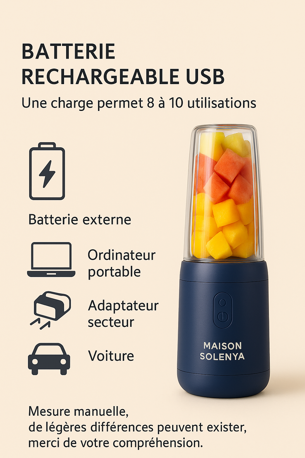 Le mixeur est parfait pour les fruits frais, légumes tendres, lait, yaourt, jus, glaçons concassés. Il n'est pas recommandé pour les aliments trop durs (comme les noix entières ou les gros glaçons)